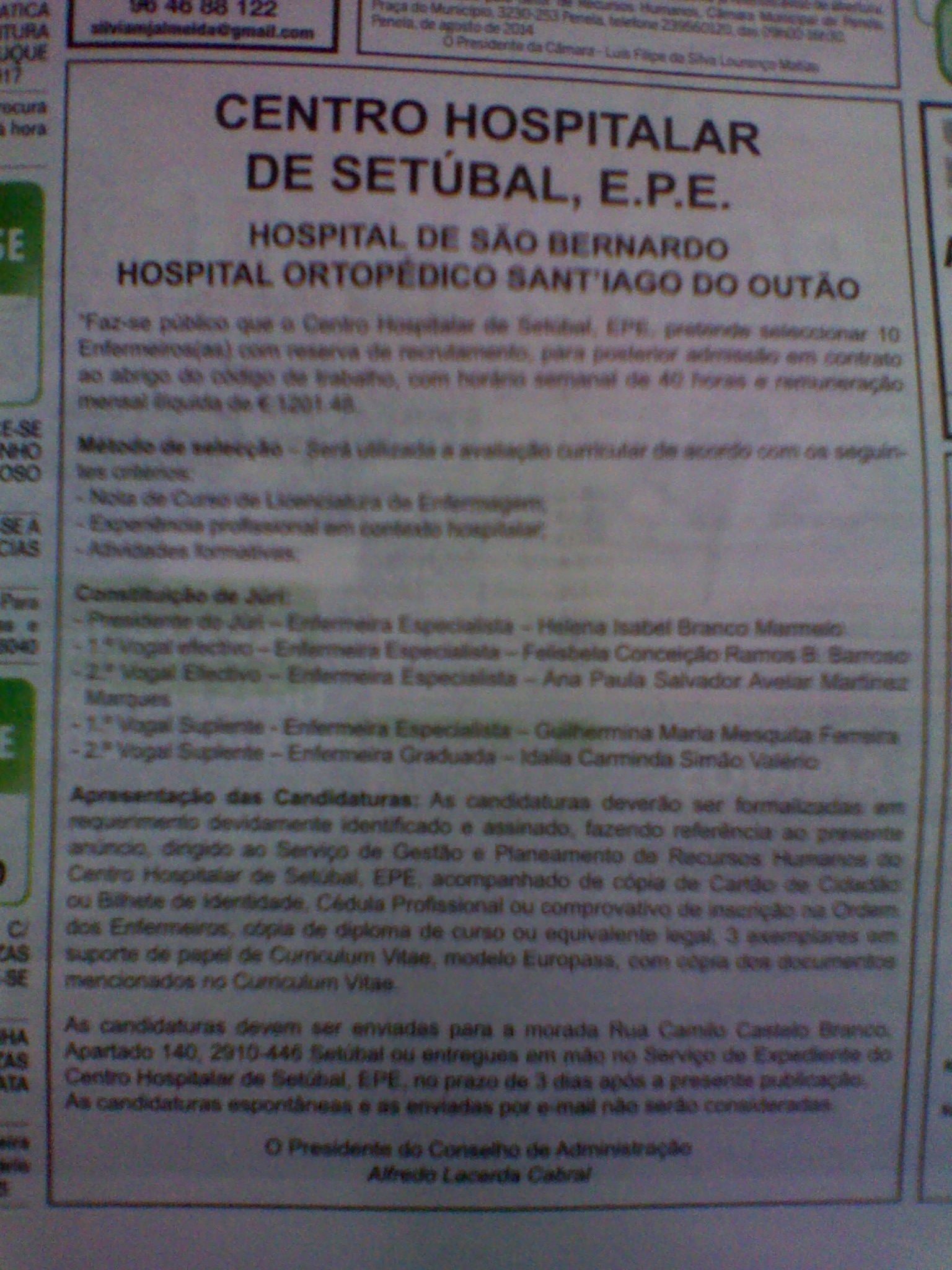 Concurso CH Setubal 18-08-2014 Published 18/08/2014 at 1536 × 2048 in Concurso Para 10 Enfermeiros no CH Setúbal Com Apenas 3 Dias Para Concorrer Next →