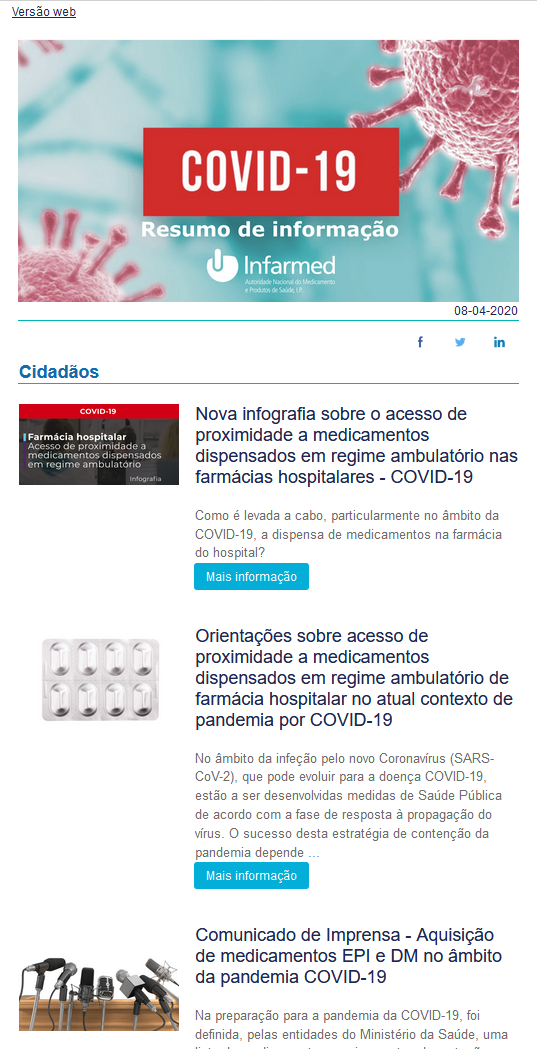 Nova edição da newsletter com resumo da informação da área COVID-19