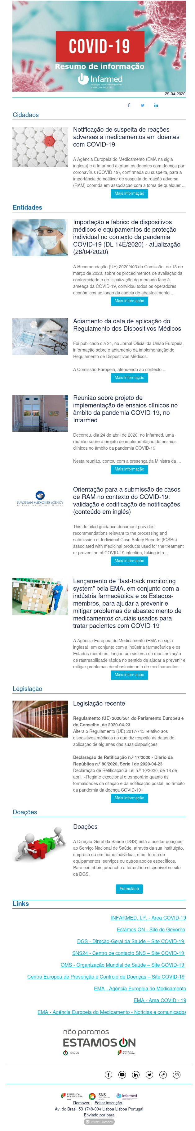 Covid-19 Novo Coronavírus SARS-CoV-2 29/04/2020: Relatório de Situação DGS, Notícias