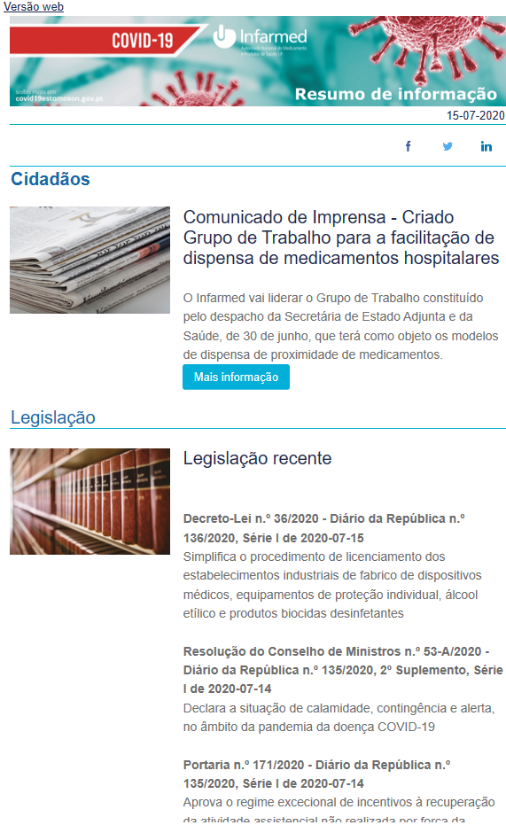 Nova edição da newsletter com resumo da informação da área COVID-19 – Infarmed