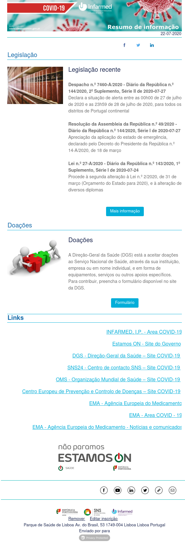 Nova edição da newsletter com resumo da informação da área COVID-19 – Infarmed