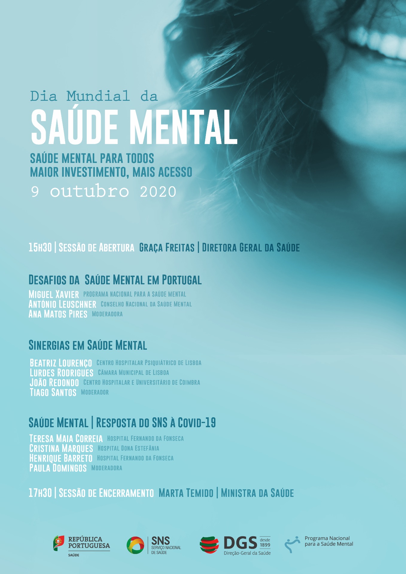 Subordinado ao tema “Saúde Mental para Todos: Maior Investimento, Mais Acesso”, o evento conta com a participação da Diretora-Geral da Saúde, Graça Freitas, que fará a sessão de abertura, e da Ministra da Saúde, Marta Temido, que encerra o webinar.