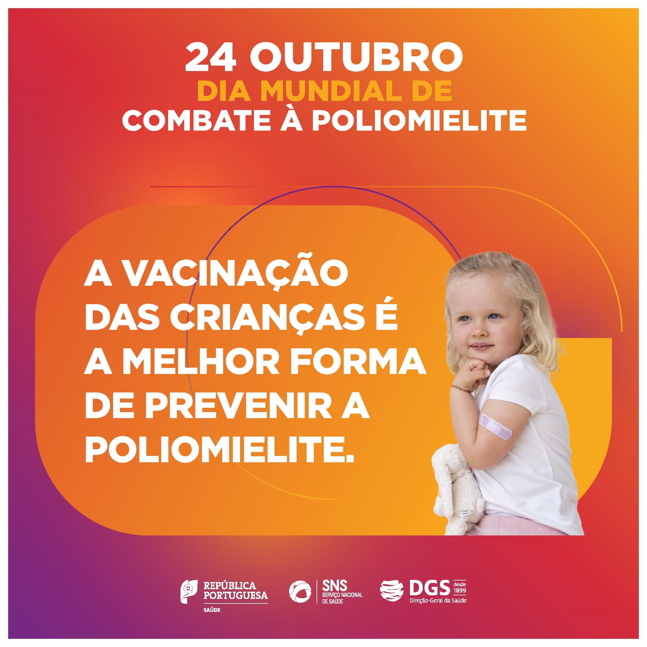 Em 2022 comemoram-se 20 anos desde a eliminação da poliomielite na Europa. No Dia Mundial de Combate à Poliomielite, a Direção-Geral da Saúde recorda que Portugal é pioneiro no combate a esta doença e apresenta coberturas vacinais de 99% na população com 12 meses de idade. O último caso de poliomielite em Portugal, com paralisia por vírus selvagem, verificou-se em 1986.